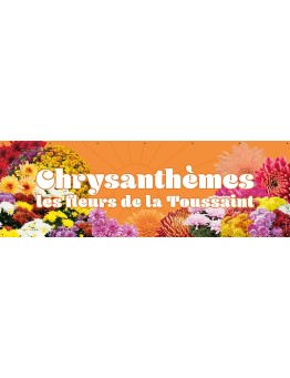 Nouveau cached liste de souhaits cached accueil Banderole 143 - chrysanthèmes hookdisplayProductListReviews Formats disponibles : 1 m x 50 cm - 2 x 1 m - 3 x 1 m - 4 x 1 m.FRANCO À PARTIR DE LA 2e BÂCHE.PRIX EN BAISSE POUR LES BÂCHES PVC. 22,80 € Sélectionner une option