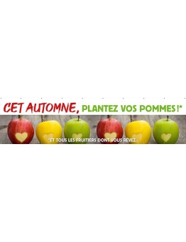 Nouveau accueil Banderole 001 - plantez vos pommes hookdisplayProductListReviews Formats disponibles : 1 m x 50 cm - 2 x 1 m - 3 x 1 m - 4 x 1 m.FRANCO À PARTIR DE LA 2e BÂCHE.PRIX EN BAISSE POUR LES BÂCHES PVC. 0,00 € Prix cached Ajouter au panier cached liste de souhaits cached