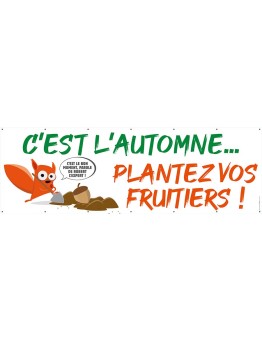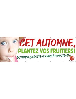 Nouveau accueil Banderole 004 - Plantez vos fruitiers hookdisplayProductListReviews Formats disponibles : 1 m x 50 cm - 2 x 1 m - 3 x 1 m - 4 x 1 m.FRANCO À PARTIR DE LA 2e BÂCHE.PRIX EN BAISSE POUR LES BÂCHES PVC. 0,00 € Prix cached Ajouter au panier cached liste de souhaits cached